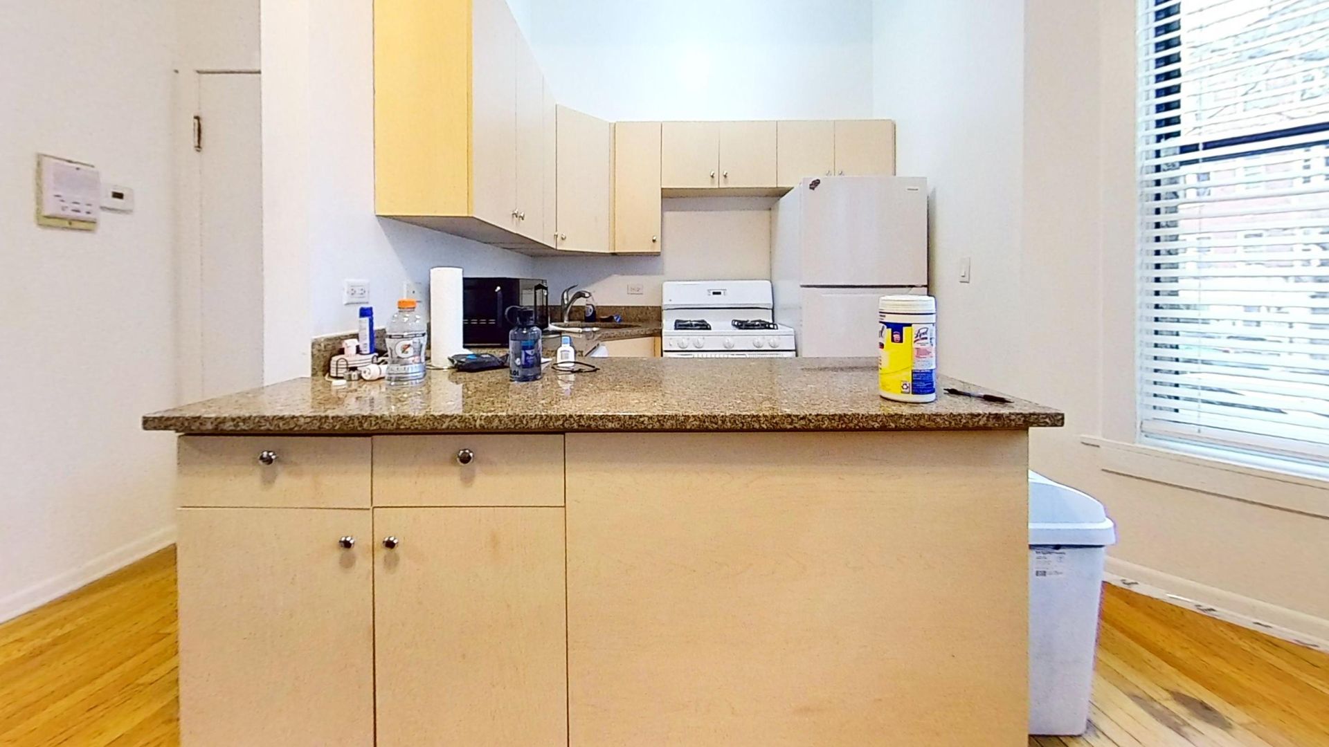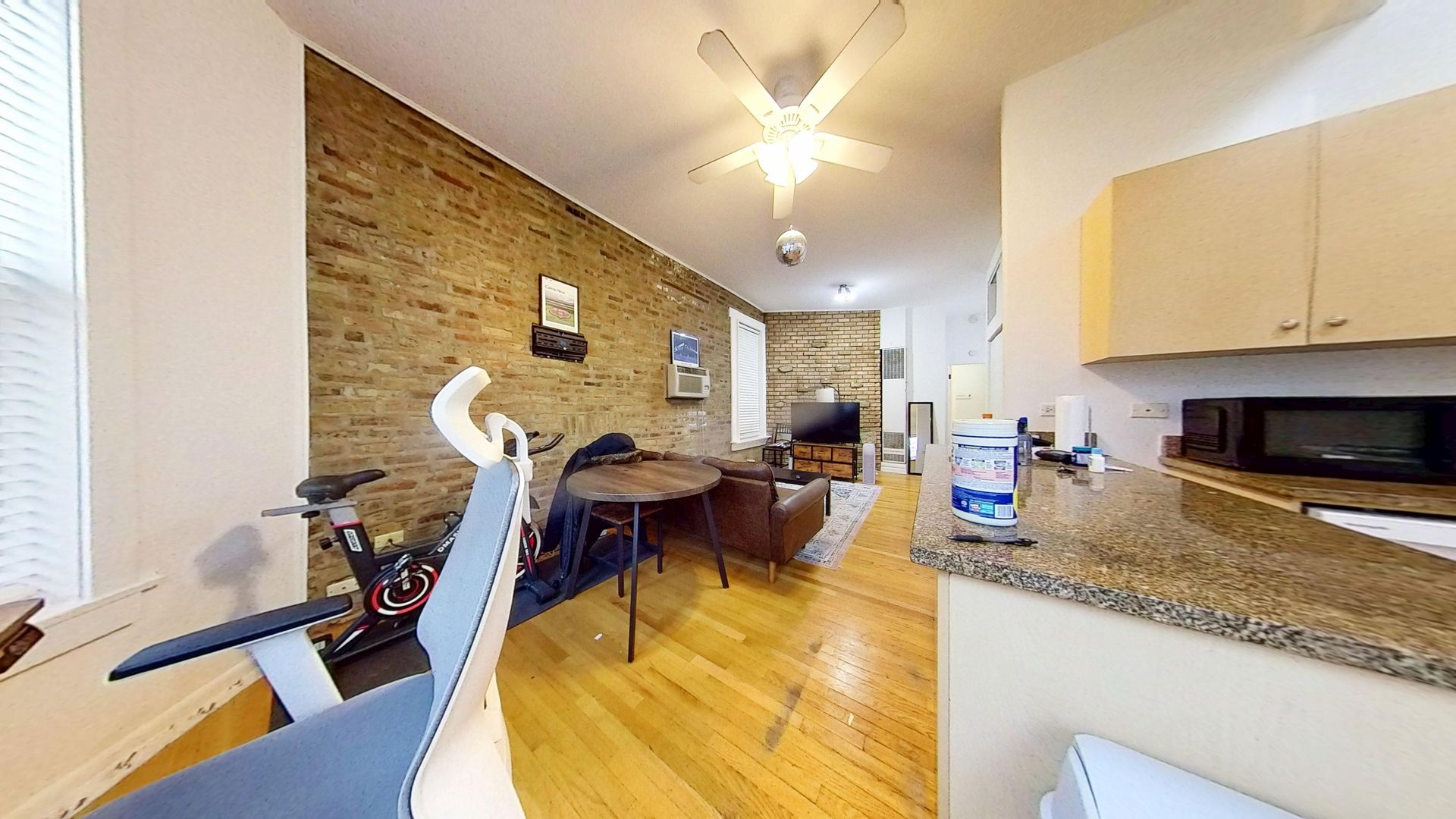 This raised first floor East Lakeview one bedroom features hardwood floors, exposed brick walls, decorative fireplace, dishwasher kitchen with granite counter tops, gas heat, and air conditioning.