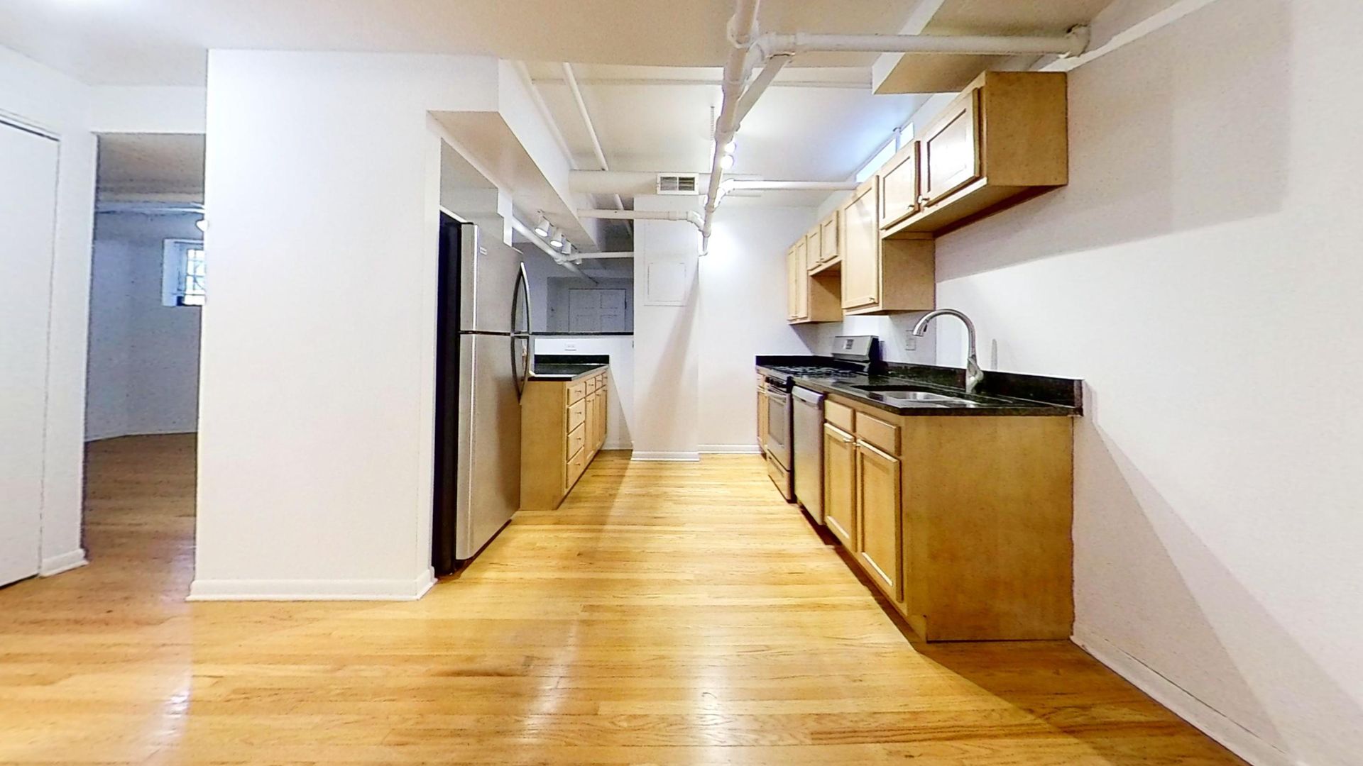 This rehabbed garden level East Lakeview one bedroom features hardwood floors, breakfast bar dishwasher kitchen with granite counter tops, alarm system, gas-forced air heat, and central air conditioning.