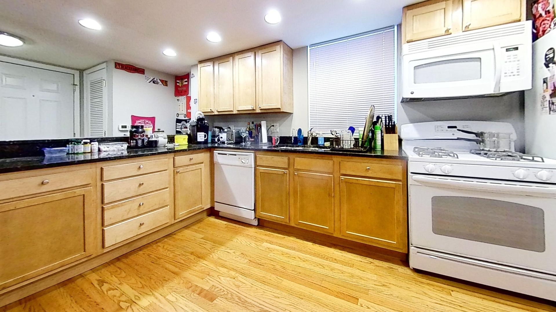 This garden level Portage Park one bedroom features hardwood floors, large dishwasher kitchen with breakfast bar and granite counter tops, updated bathroom, alarm system, gas-forced air heat, and central air conditioning.